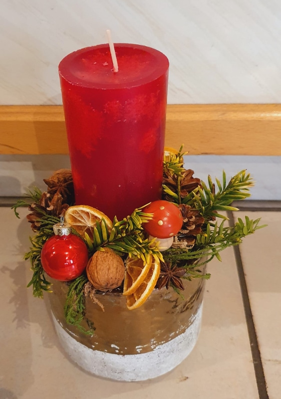 Arrangement de bougie dans des teintes chaleureuses, un esprit de Noël très nature.